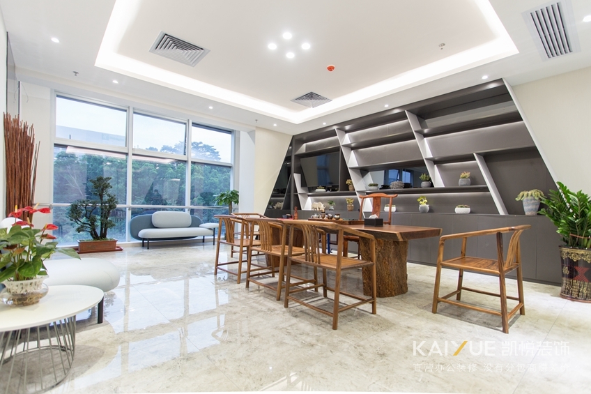 有白色调的明亮干净,木色调为中间色,整个办公室装修实景图非常温馨,拥有自然纯朴的本质,而红色调是品牌的色彩,它带来动感与热情。建筑位混凝土框架结构,幕墙设计,采光良好。项目三面环窗,采光及通风性良好,如何尽可能地引入自然光,给予空间充足的光照,“草色入帘青”是我们在平面布局及空间深化时重点考虑的部分。