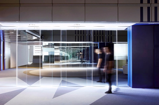 有科技的神秘,有酒吧的炫酷,这个办公室装修得真不像个办公室,但它能让员工真正爱上工作。以湛蓝地坪图腾作为基底,用光的艺术来丰富空间,界线和光体建构出虚实光影交叠的场域。光是门伟大的艺术,不管是用在画面还是空间,它以多样面貌在空间中追逐,无限反射的霓虹,或静或动,或指向人的内心,或表达办公室的性情,都是一道牵往深处的引线。