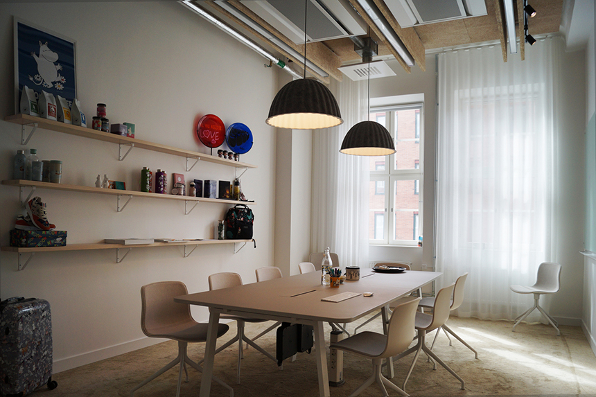 办公室室内设计致力于创造一个多功能的工作空间,通过定制的橱柜以及室内装饰的数控壁画,使得建筑兼具展示公司经典的斯堪的纳维亚品牌的功能。