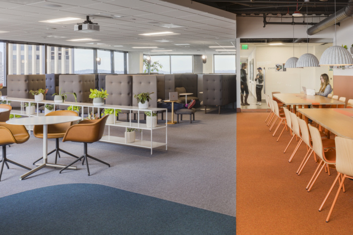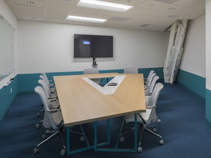 在这个办公室环境装修设计项目中必须有鲜艳的色彩-来自医疗领域,许多团队成员认为传统的医疗空间(甚至办公室)通常是通用的,几乎太中性了。图书馆和周围休息室的色彩爆发有助于消除这种陈规定型观念,地毯和饱和家具的精心更换会在整个办公室内营造出这些色彩斑斓的时刻。