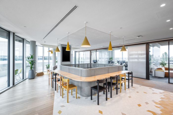 写字楼办公空间设计师为企业营造了开放、灵活和协作的新环境。该概念着重于健康和工作/生活的平衡,结合了一流的员工便利设施,包括健身房、瑜伽室、音乐和游戏室以及儿童软游乐区、制造商的空间和一间创意工作坊,鼓励传统艺术实践来充实数字游戏的开发过程。