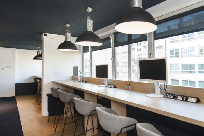 现代办公室装修设计更加注重空间给人的包容度和热情,在入户前厅设置了一个迎宾吧台,用户进入空间可以感受到亲切和归属感。