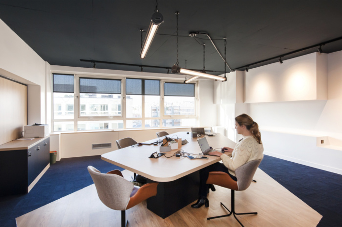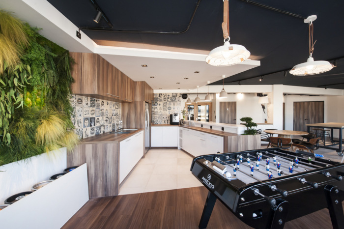 整个办公空间融入了许多天然无日常的雕塑形象,体现了一种崇尚品质的工匠精神。灯光采用柔和的淡黄色,给整个办公室增添了温暖。自然景观元素适时加入,使得空间生机盎然。