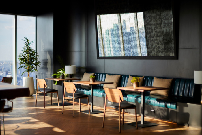 从门打开进入电梯大堂的那一刻起,就营造出热烈而华丽的欢迎氛围。木质板条墙饰面和深胡桃木饰边,带有醒目的黄铜门把手的雕像式法式门廊通向舒适而豪华的客户休息室,采用铂金和金色搭配灰褐色、棕色和奶油色,营造出郁郁葱葱的丰富色调。