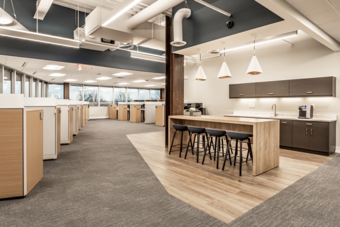 通过展示现有的钢梁,我们将原始特征引入与精致设计元素并列的空间,最后的修饰和植物在整个更新的过渡办公室中唤起了热情好客的氛围。#医药公司办公空间设计装修#