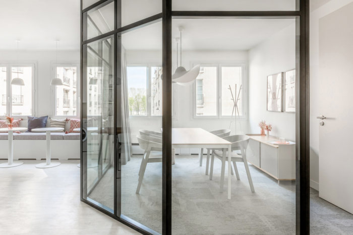 该美容产品公司的办公室拥有极好的自然清晰度,办公室和会议室配备玻璃隔断,在不封闭视野的情况下划定空间。
