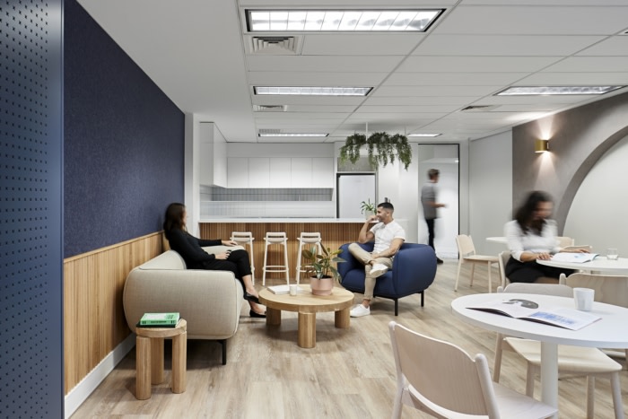引入突破空间是一个优先事项,为非正式合作提供缓解和空间。轻质家具和木地板、白板拱门和各种座位选择抵消了颜色注入,构成了这个多方面的空间。这个工作场所不仅仅是一个吃饭的地方,而是鼓励离开办公桌去开会和参与协作。