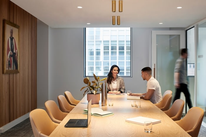 客户要求在房子前面有一种精致的美感,唤起一种温馨而优雅的体验。除了金属和皮革饰面外,温暖的天然木材也提升了接待处、会议室和董事会的档次。除了在这些空间中发现的应用最小和柔和的颜色之外,这些空间最大限度地访问工作空间中的自然光,创造了一个平静、专注的空间。#办公室装修设计#