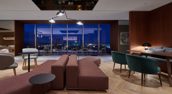 该设计允许展示办公室文化,自然光流入并以城市的壮丽景色为背景。工作环境的平衡,包括开放式座位、内部办公室和不可预订的隐私房间,不仅能让员工更容易看到彼此,还能以更高效和有效的方式进行协作。#高级办公装修方案#