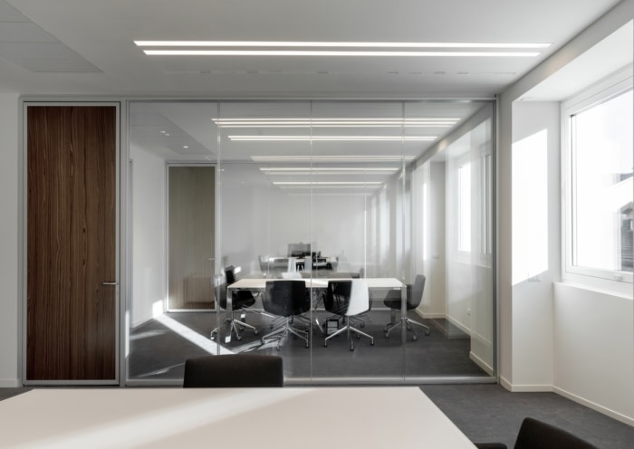 分布在每层楼的办公室装修装饰体现了对卓越设计的选择,家具将简约的颜色和形状与优雅的饰面融合在一起,包括木板木类型的选择和位于极具代表性的会议室中心的大桌子,位于大楼的最后一层。