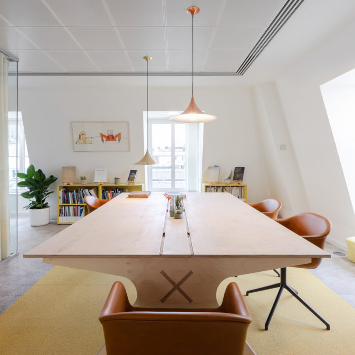 透明和镜面隔断、可移动窗帘和镜面木制品是空间中唯一的建筑干预措施,强调了在实现最大效果的同时做最小可能的愿望。使用令人困惑但不会迷失方向的微妙反射创造了一种视觉隐私感,让工人可以隐藏在显眼的地方。每个方向的细微差异都赋予了一种不可思议的反射元素,试图将相对有限的空间有趣地加倍。