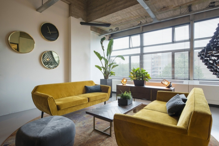 办公室设计?是在混凝土原始建筑内完成的 以暖色调作为对比