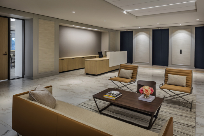 设计目标是实现团队对现代、光线充足、引人入胜的办公空间的愿景,设计团队通过将浅色天然木材色调和白色大理石与深色口音(如玻璃和门框以及灯具饰面)进行对比来做到这一点。这种组合使整体感觉明亮通风,但增加了现代感。