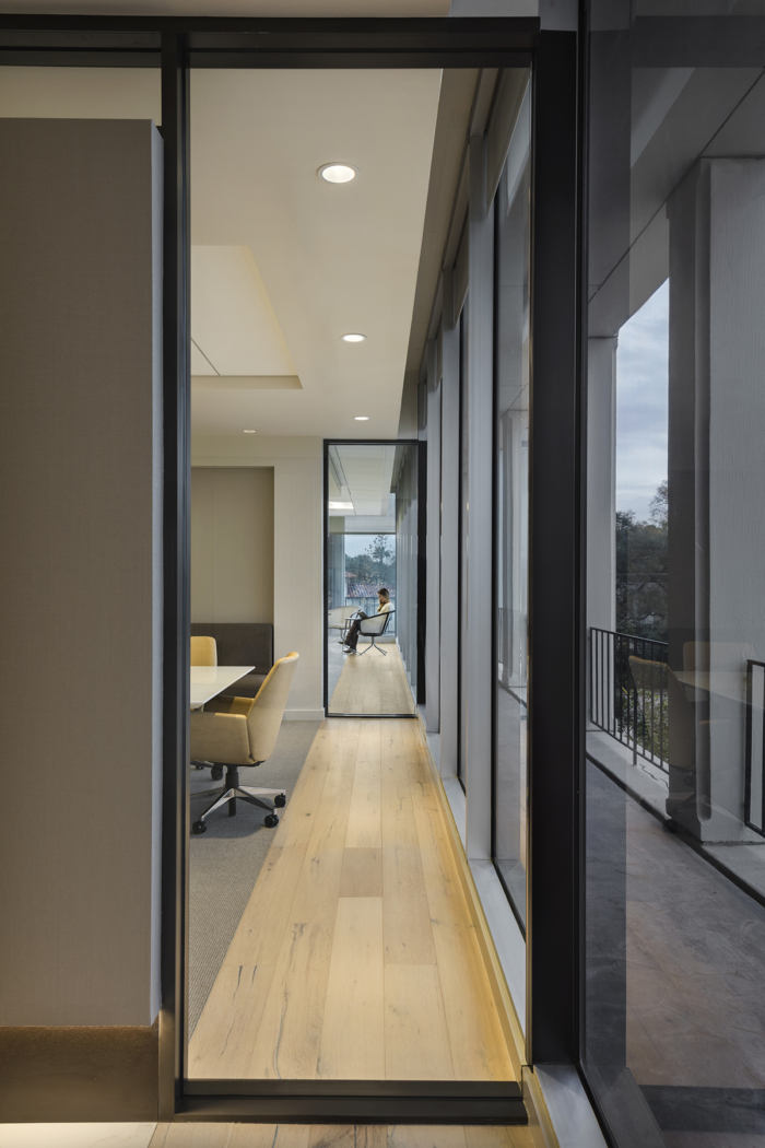 添加玻璃面板以创造进入会议室和休息空间的战略视野