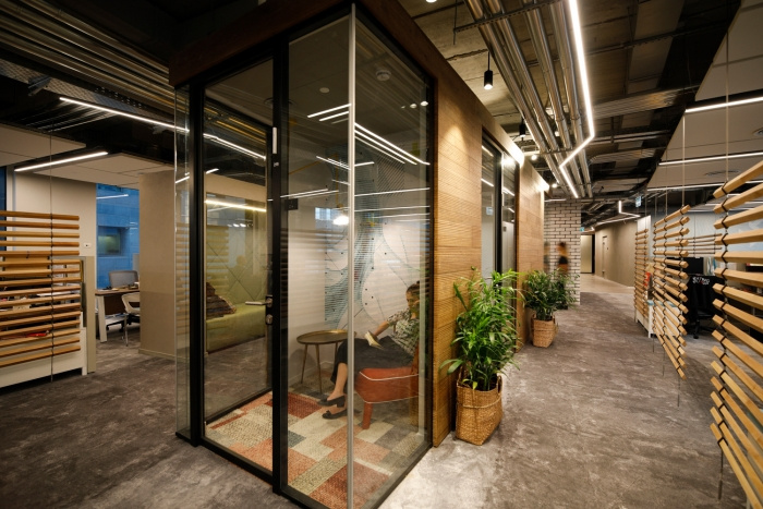 办公空间通过使用木材和绿色植物而变得柔和