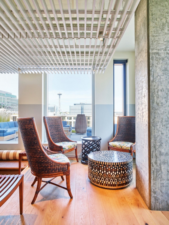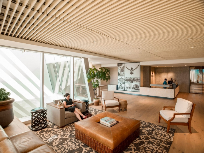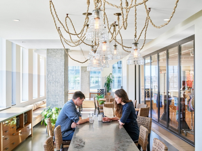 受汤米巴哈马“让生活成为一个漫长的周末”精神的启发,新的120,000 平方英尺的办公室设计建立在使汤米巴哈马如此成功的属性之上——岛屿生活和休闲精致的体现。这些空间以天然材料调色板和丰富的纹理为特色,例如编织布墙覆盖物和粗磨的石头。