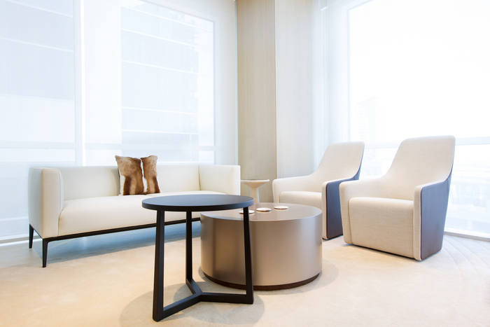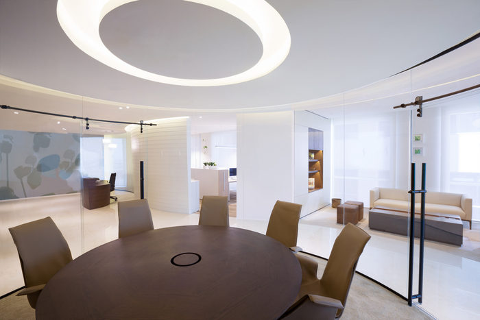 空间规划围绕一系列曲线设计,引导您穿过空间。设计师在中央会议室的墙壁上使用了弧形玻璃来延续这个非线性主题。天花板上的线条和定制设计的地毯进一步强调了空间中“流动”的概念。