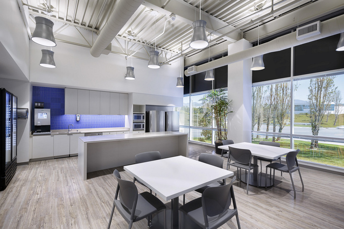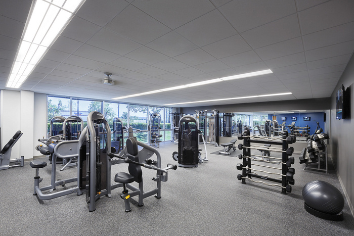 一些独特的空间包括带录音棚的工作室和用于录音的绿色房间、健身中心、视频会议设施和用于实践服务和安装培训的杆子场。#办公室装饰装修#