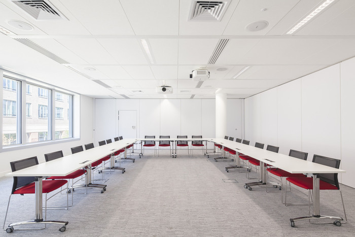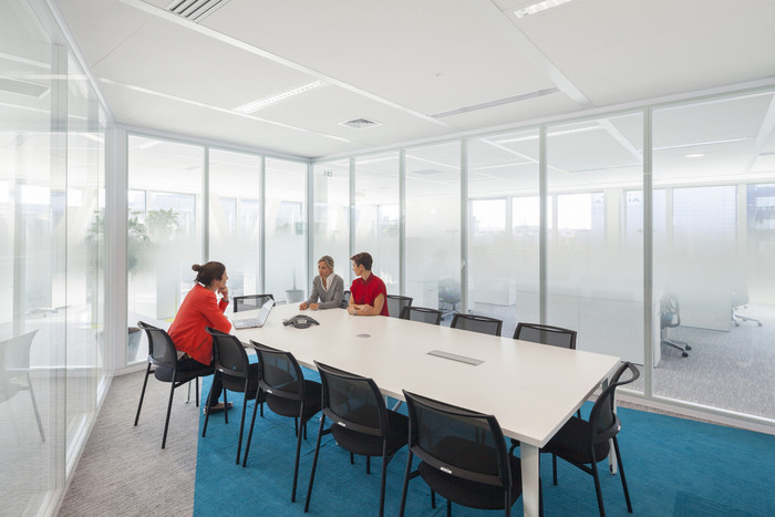 设计师帮助企业创造了一个更高效、更灵活的工作环境,以反映集团的价值观、文化和雄心,并强调协作方面。这座建筑非常明亮,有玻璃。布局有利于加热、声学和视觉舒适度,包括透明分隔和自然照明??趴占涞拇唇ㄊ俏斯睦轮涞慕涣骱托?,同时为每个人保持舒适和亲密。