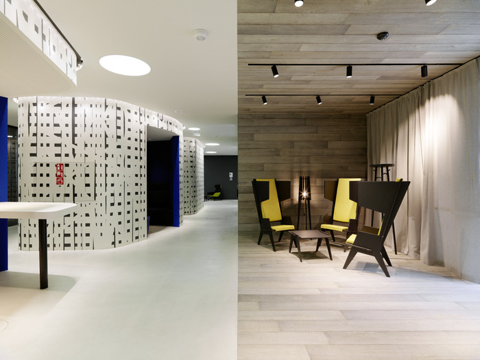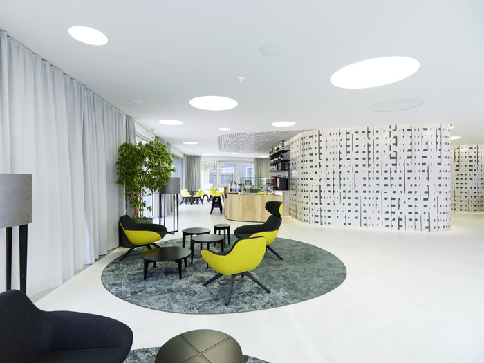 超大、专门设计的木制家具是主要设计元素之一,其非常独特的质朴橡木贴面提供现代外观,有助于定义空间。对于团队来说,这是一个“新工作”环境的完美例子。没有封闭的办公室,甚至高层管理人员也在使用开放空间及其私人领地。