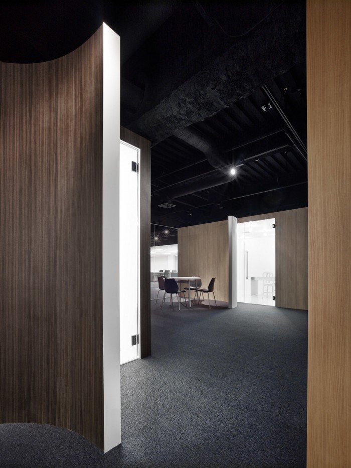 每个盒子都以略有不同的方式“打开”,巧妙地连接内部和外部,塑造视线,创造一种空间体验,当你在房间里走动时,每个盒子都会显露出来。翻开的入口将每个盒子周围的区域变成了一个半开放的交流角,不需要展示的功能元素,如复印机、垃圾箱和冰箱可以隐藏在盒子后面。#办公室设计#