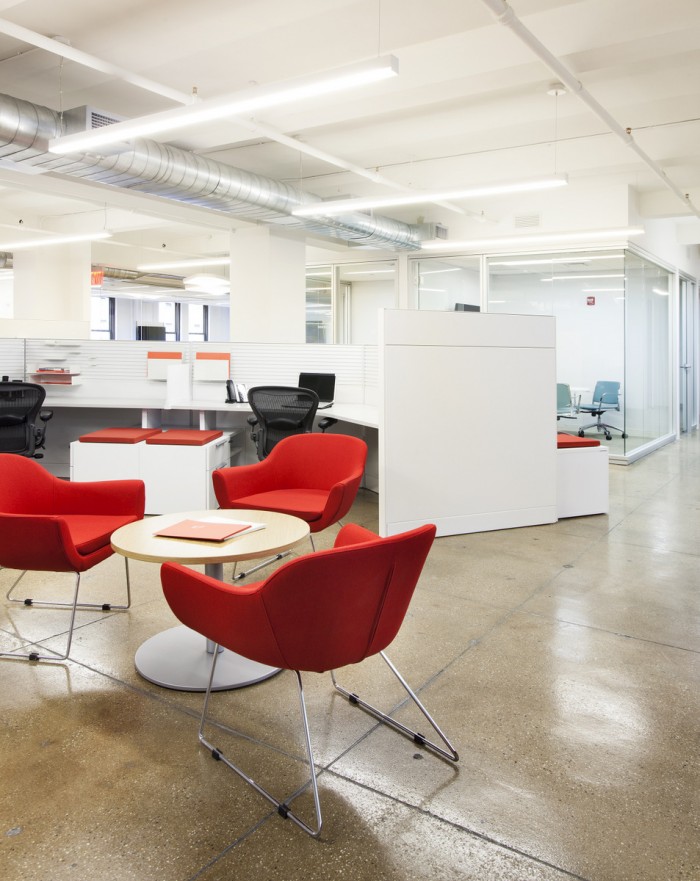 白色和灰色的中性色调辅以干净、现代的材料,如玻璃、混凝土、木材和金属,并通过明亮的色彩搭配以浅绿色和红色装备的家具。灵活的会议室兼作图书馆,可分为三个较小的房间或开放为一个大型会议室,以容纳正式会议和全球访客。分隔墙由玻璃制成,以允许最大量的光线进入室内。