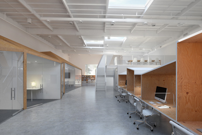 其他混合体包括树椅、山地办公室、屋桌和天洞。每一个都是由简单的胶合板和涂白漆的纤维板构成的。因此,所有工人都可以使用各种微型个人空间和团体规模的集体空间,这种内部办公室和外部世界的概念交织扩展了居住的体验可能性。