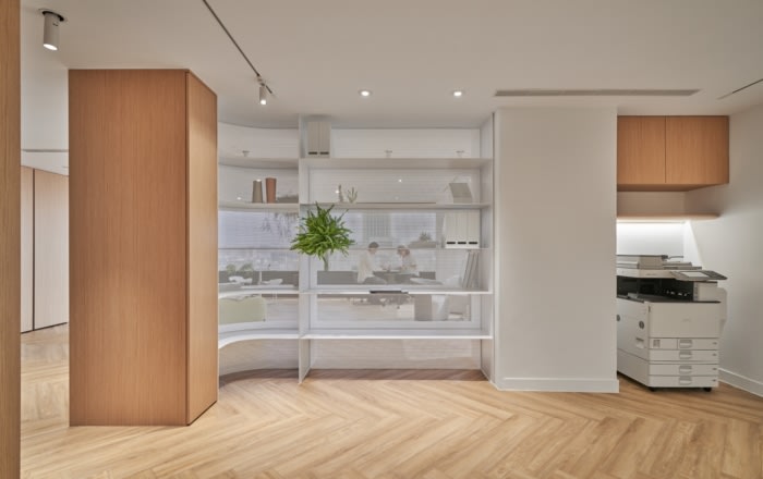 办公室的设计考虑了人与空间之间的联系,使用了“感官流动”的概念。该办公室设计有效地分隔了空间,同时仔细计算了空气和光线通过穿孔隔板和精心布置的间隙的自由流动。人流量得到很好的管理,没有视觉障碍。