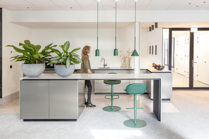 办公空间的社交“心脏”被设计成一棵“空心树”。这个核心通过通往五楼和屋顶露台的内部楼梯相互连接。这个迷人的露台俯瞰着阿姆斯特丹市中心的天际线。
