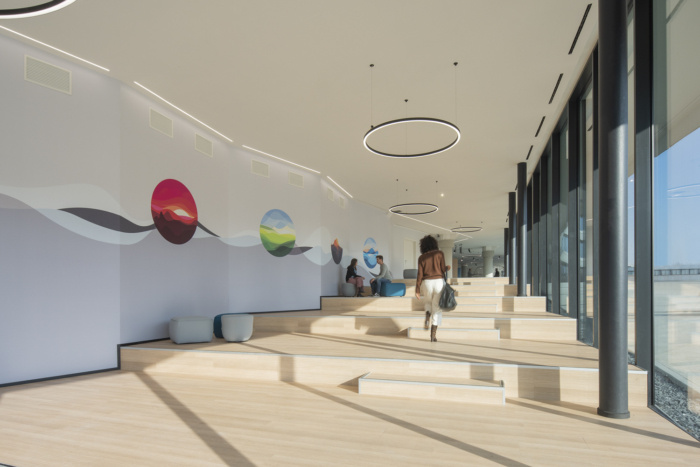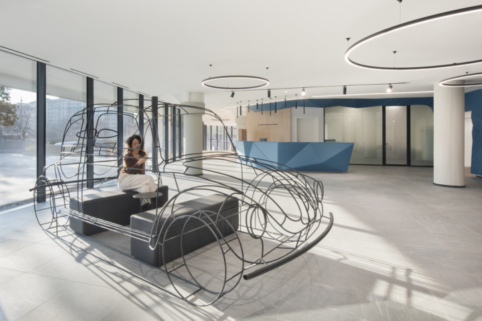 汽车公司办公室设计理念被称为“冒险的感觉”,通过旨在为冒险提供意义和方向的室内空间展开,并响应公司和员工的需求:沟通、幸福、归属感和创新感。最终的结果是一个被设想为身份之旅的地方 - 探索,分享体验增强的离开感觉。