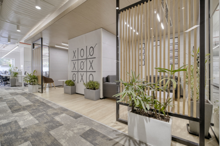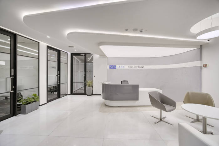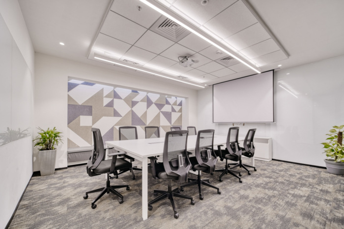 这家科技公司想要一个现代空间,不要装满太多颜色或几何形状。工作场所经典而平静,确保专注于工作和生产力。