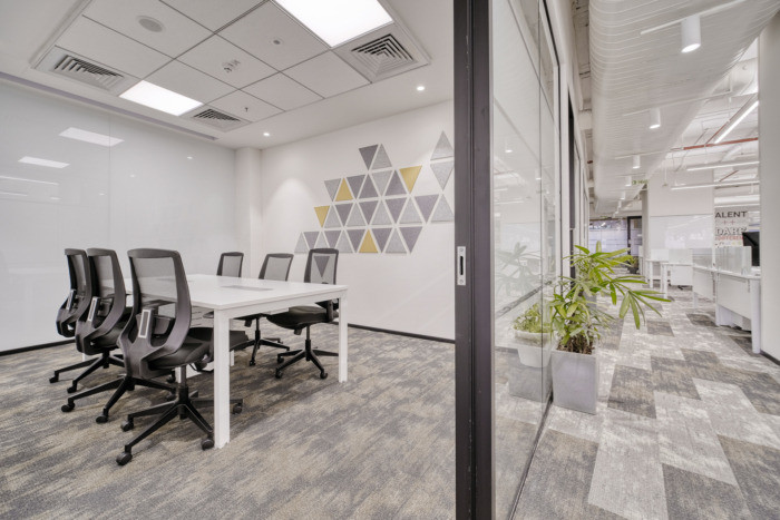 颜色和纹理是灰色、棕色和白色的泥土色调,在工作中营造出一种控制感和平静感。接待处有分层的天花板层,最低层有背光拉伸织物。它使它看起来时尚而专注。咖啡厅和休息区采用木材制成,既保暖又舒适?;嵋槭业纳Ч谇奖谏喜捎妹毕獍?,在网格天花板上采用瓷砖,以提供更好的声学效果。#广州办公室装修#