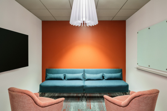 认识到企业的业务和工作的协作性质,设计师建立了一个完整的资源库以及各种私人和半私人会议和休息空间,以鼓励对话和讲故事。现在吸引人的咖啡馆设施位于全景,同时不会中断日常工作流程,结果可作为市政厅会议、聚会和根据需要进行多功能使用的中心。
