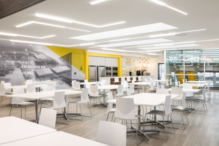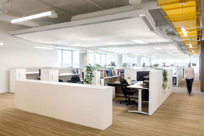 办公室采用现代设计,使用玻璃、拱肩和金属板材料。入口区域具有独特的几何形状,以提供遏制吸引力,并充当与街道平行的大型行人天篷并连接两个建筑物入口的媒介。#办公室设计装修公司#