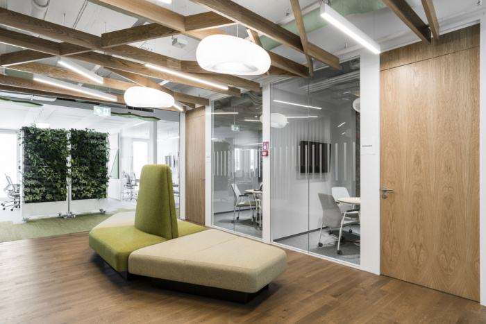 办公空间设计有符合人体工程学的工作场所,包括植物、私密的会议室、厨房和咖啡点,以及一个有利于整合的公共空间。在办公室的另一部分,有一个公共区域,非常适合不太正式的会议、员工和休闲的融合。因此,室内设计营造出积极的氛围和放松的机会。