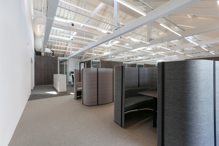 办公楼还配备了带美食广场的中间楼层,旨在强调同事在空闲时间之间关系的重要性。在上层,屋顶由现有的木结构支撑,主要走廊达到10米的高度。