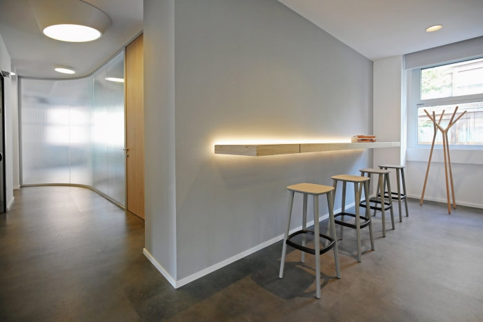 浅色木材、混凝土质地、灰色阴影和颜色的使用是调色板的特征,照明项目的特色在于强调不同的工作环境。
