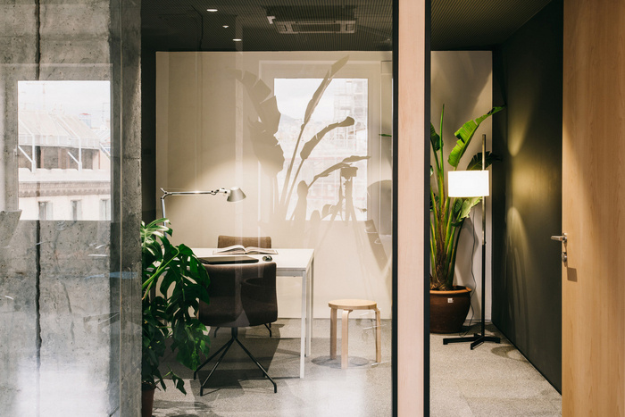 很容易区分两个世界如何在同一个空间中共存,封闭空间之间的二元性,其中沉默和集中是关键元素,与公共空间形成鲜明对比,在公共办公室空间设计中,灵活性和多功能性带来了所有的活力。