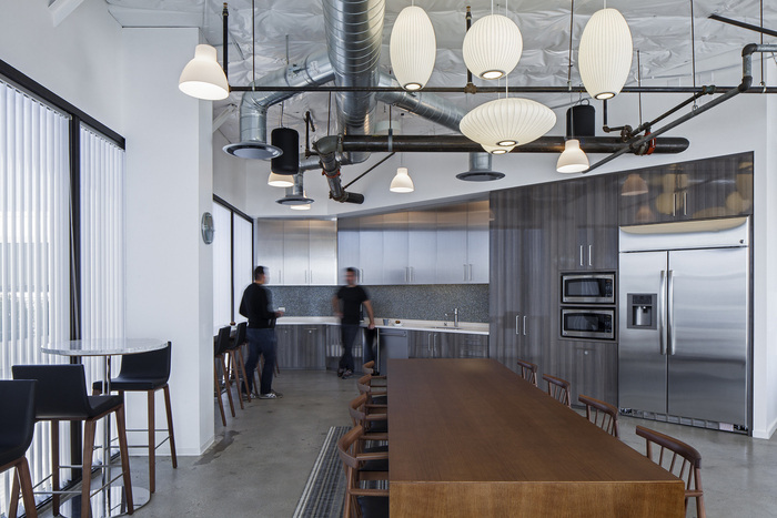 来到这间办公室的访客会立即感到舒适,可以在空间中漫步并享受一览无余的全景。调色板混合了冷灰色和暖棕色,而两堵活墙和再生木墙覆盖物将室内空间与太平洋田园诗般的自然美景连接起来。#广州办公室设计装修公司#