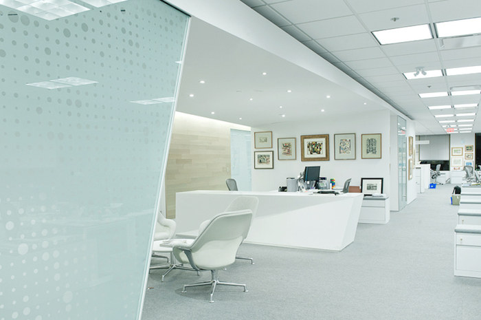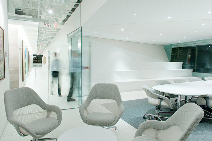 办公空间设计的挑战集中在两个主要客户目标上:体现和放大公司的企业形象,以及展示客户的大量加拿大现代艺术收藏。该设计解决方案通过不同的功能分区满足了这两个独特的要求,它们通过对材料和表面的思考相互交流。#办公空间设计装修#