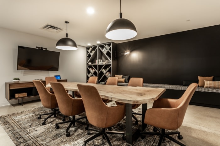 设计中的撞色象征着两个不同的品牌在一个有凝聚力的空间中聚集在一起,因为它向历史悠久的品牌致敬并展示了新品牌。#办公室设计公司#