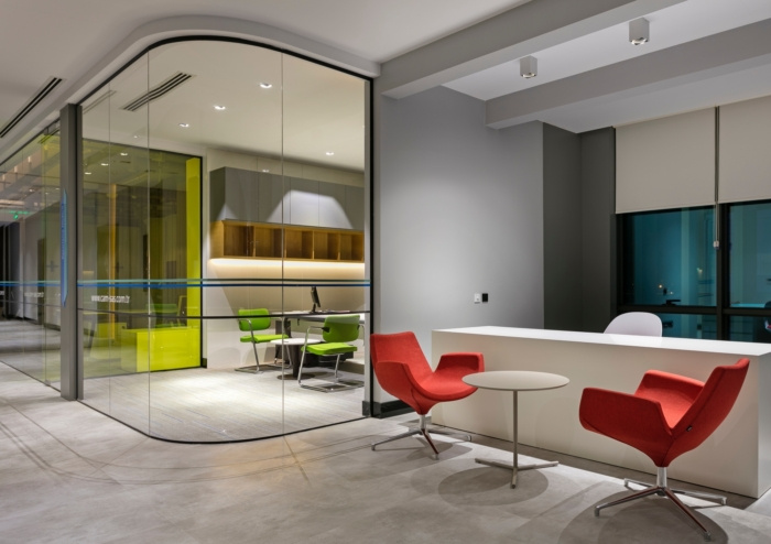 主要的挑战是让日光正确地进入大楼,拥有一个员工可以舒适自由地工作的工作空间,并获得一个明亮和现代的办公空间,同时鼓励协作和团队合作。由于建筑的尺寸,最重要的是设计透明的办公箱和房间,为整个空间提供自然光,进入新的接待区也意味着会产生很大的影响。#办公空间装修#
