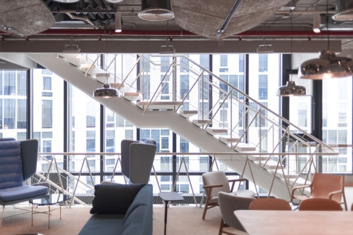 设计师从场地的历史中找到灵感,因此设计带来了工业遗产、形状、材料和纹理系列的元素,这些元素让人想起当地的历史,同时也通过简单的几何线条、流线型、干净的方式捕捉现代的精髓饰面和技术。#办公室装修公司#
