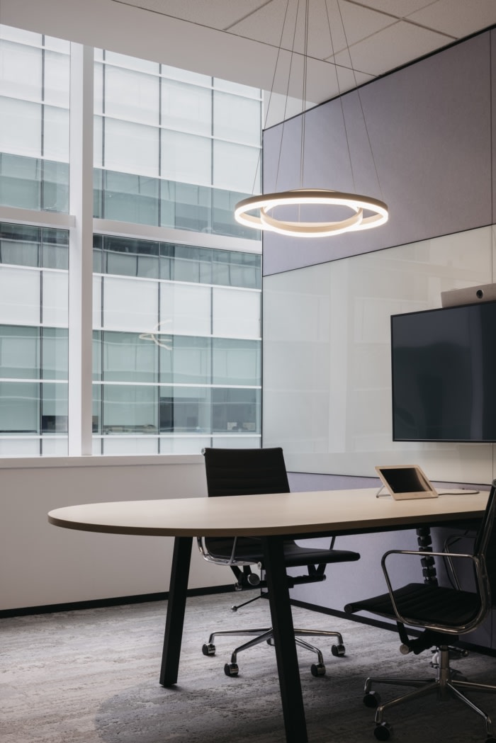 办公室装修:曲线天花板线条一直延伸到办公室后面