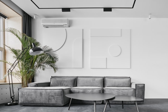办公大楼装修:白色和深灰色结合 创造了一个鼓舞人心的色彩