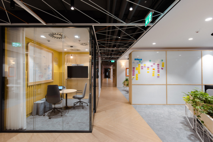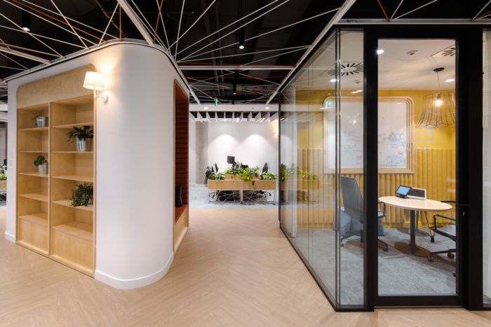设计主题来自电影“美丽心灵”,隐藏的联系显示在办公室走廊上方的彩色“弦”网络中。它结合了出色的功能和现代折衷主义风格。不同时代的元素通过色彩的连贯运用巧妙地融合在一起。传统作品的现代形式是办公室的特色,巴洛克式框架或水磨石等有争议的解决方案完美地补充了室内的氛围。#办公室的设计#