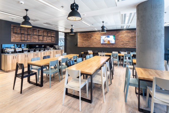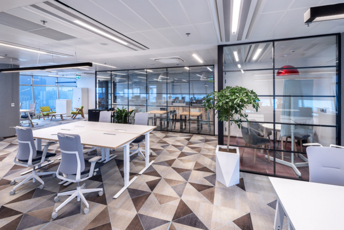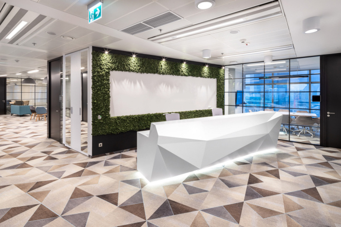 办公空间设计特别强调使用卓越的声学解决方案,例如在声学背衬或双层玻璃墙上的方块地毯,可有效消除通信区和会议室的噪音。设计中还融入了对员工友好的智能办公室照明,使照明水平和色调适应内部和外部建筑条件。