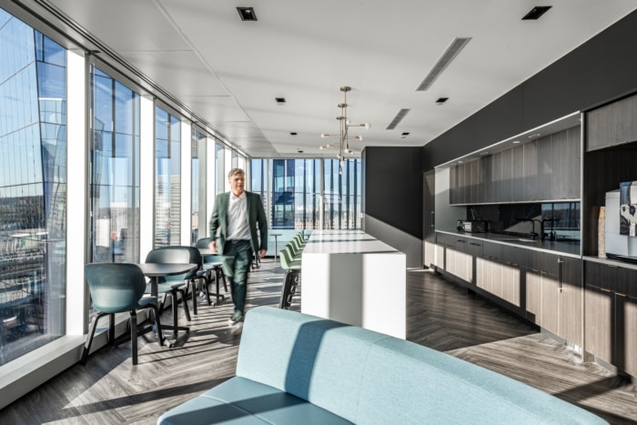 11层设有大型员工室、高密度存储和灵活的工作区。所有楼层的办公室和会议室的内部都有落地玻璃窗,以最大限度地提高所有室内空间的自然光量。#办公楼装修风格#