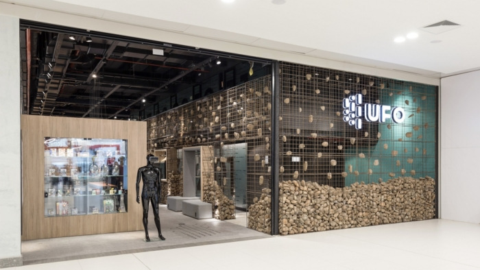 办公室第一个单元的设计在功能、概念和物理环境方面具有相似的特征??梢栽谄淞⒚婀鄄煜钅康耐骋缓徒峁够兀ㄔ煸谑街?,由带有“浮石”的金属模块制成。这个由钢和石头组成的窗帘是一个伟大而独特的元素,恢复了项目的形式和功能,在整个空间的长度上展开,将会议室和单独的办公室与共享空间(如咖啡厅、工作站和看台)分隔开来。此外,展览板、紧凑的工作站和储物柜可以通过空间找到。#办公室装修设计#