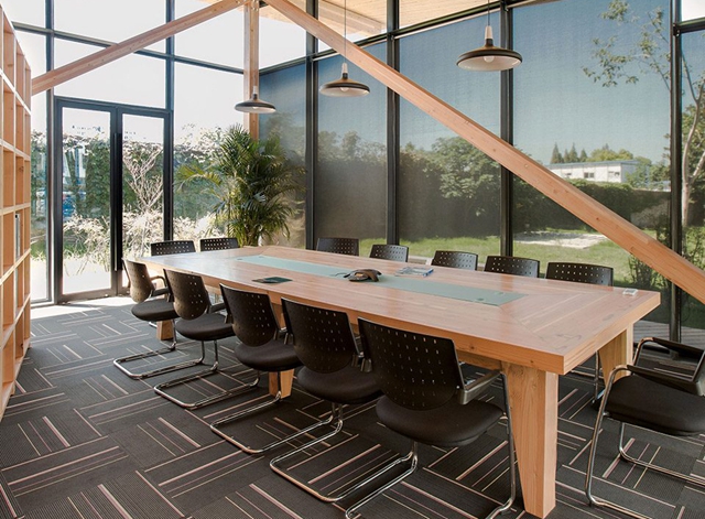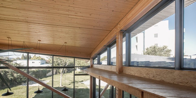 这是个小书屋,完全用木材和玻璃搭建的,办公室装修成这样完全没毛病。木结构、装配式、轻建筑是它最大的特点,强调了对环境?;さ闹匾?,追求绿色环保办公室装修的人多喜欢用天然木材来作为主材料,而玻璃代替了隔断,尽可能的利用自然光。